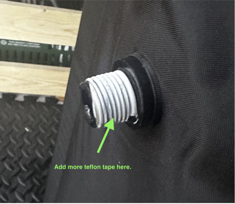 1. Reapply Teflon Tape (Precision Seal Fix) Remove the fitting and apply an additional 3–4 layers of Teflon tape (included with your order) to the threaded connection. Wrap the tape tightly in the same direction as the threading to ensure it compresses and forms a tight, secure seal during reassembly.